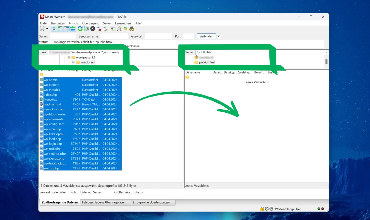 Hochladen der WordPress-Datei auf Ihren Webserver