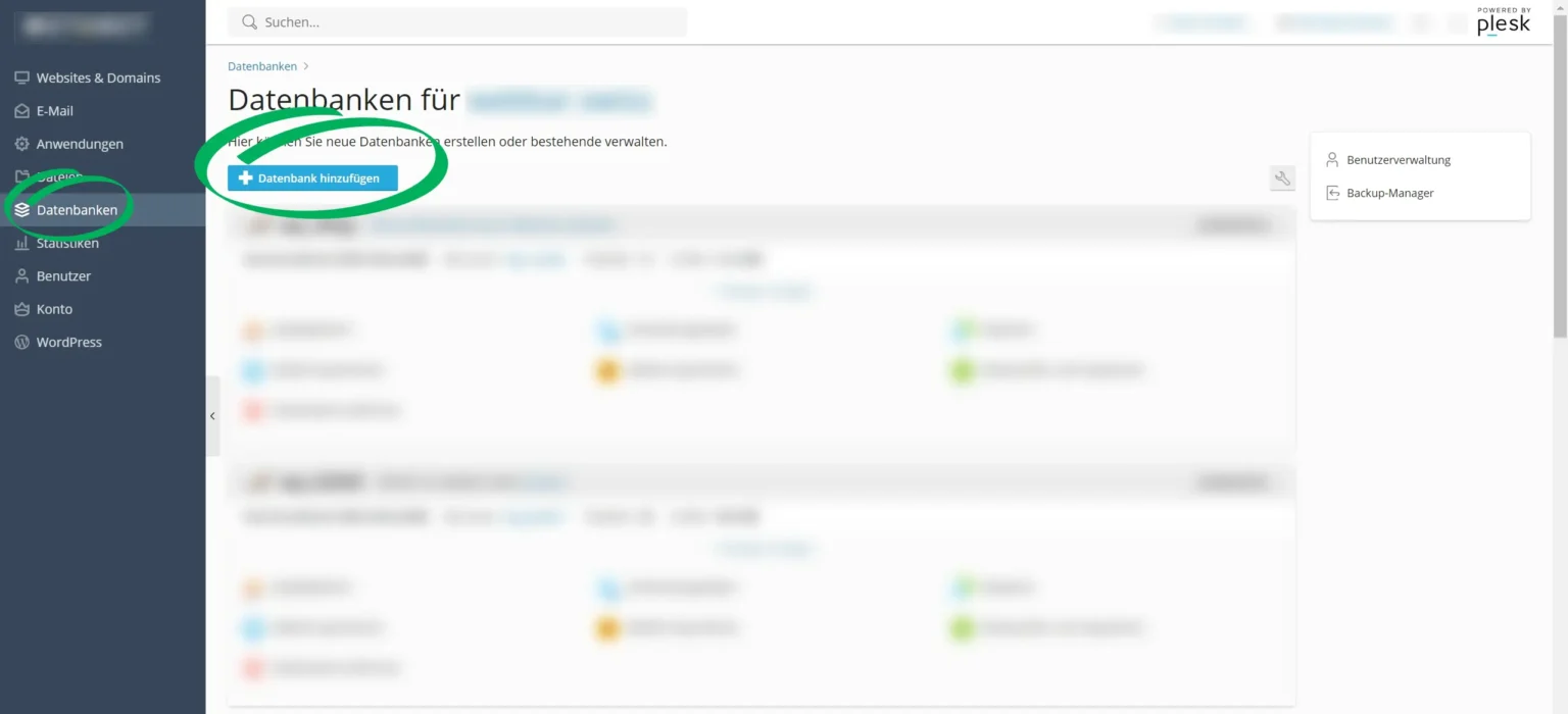 Hüpfen Sie in das Kontrollpanel Ihres Hostings. Suchen Sie nach dem Datenbank-Management-Bereich. Oftmals finden Sie dort einen Punkt wie „MySQL-Datenbanken“ oder einfach „Datenbanken“.