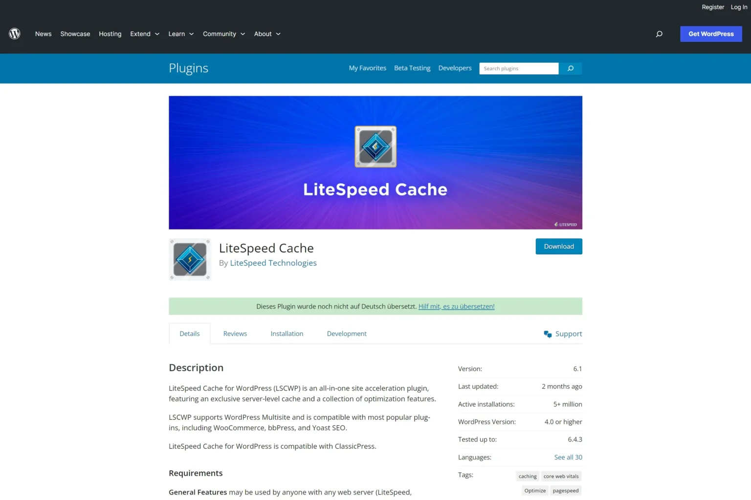 | Caching | LiteSpeed Cache | 5/5 | 5+ Millionen | Nein | Kostenlos |